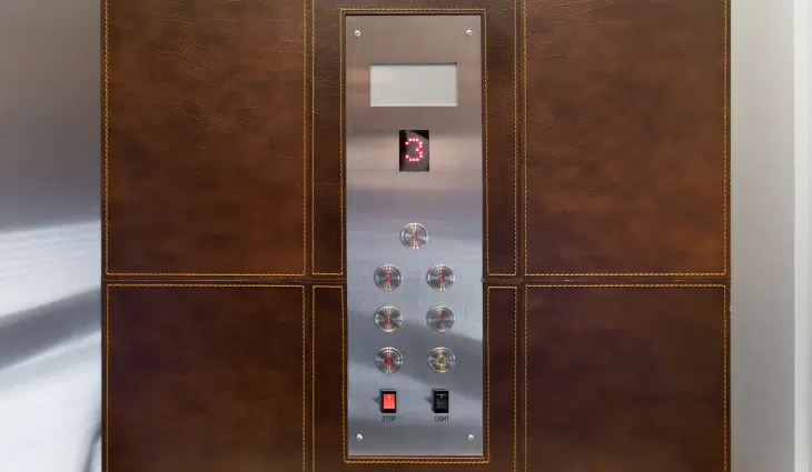In addition, we installed uniquely stitched leather panels along the elevator walls. We specified these panels with a company called Eco Domo. They provide various leather wall and skirt products for Starbucks coffee stores. The unique and dramatic results speak for themselves. A one of a kind elevator that’s for sure.